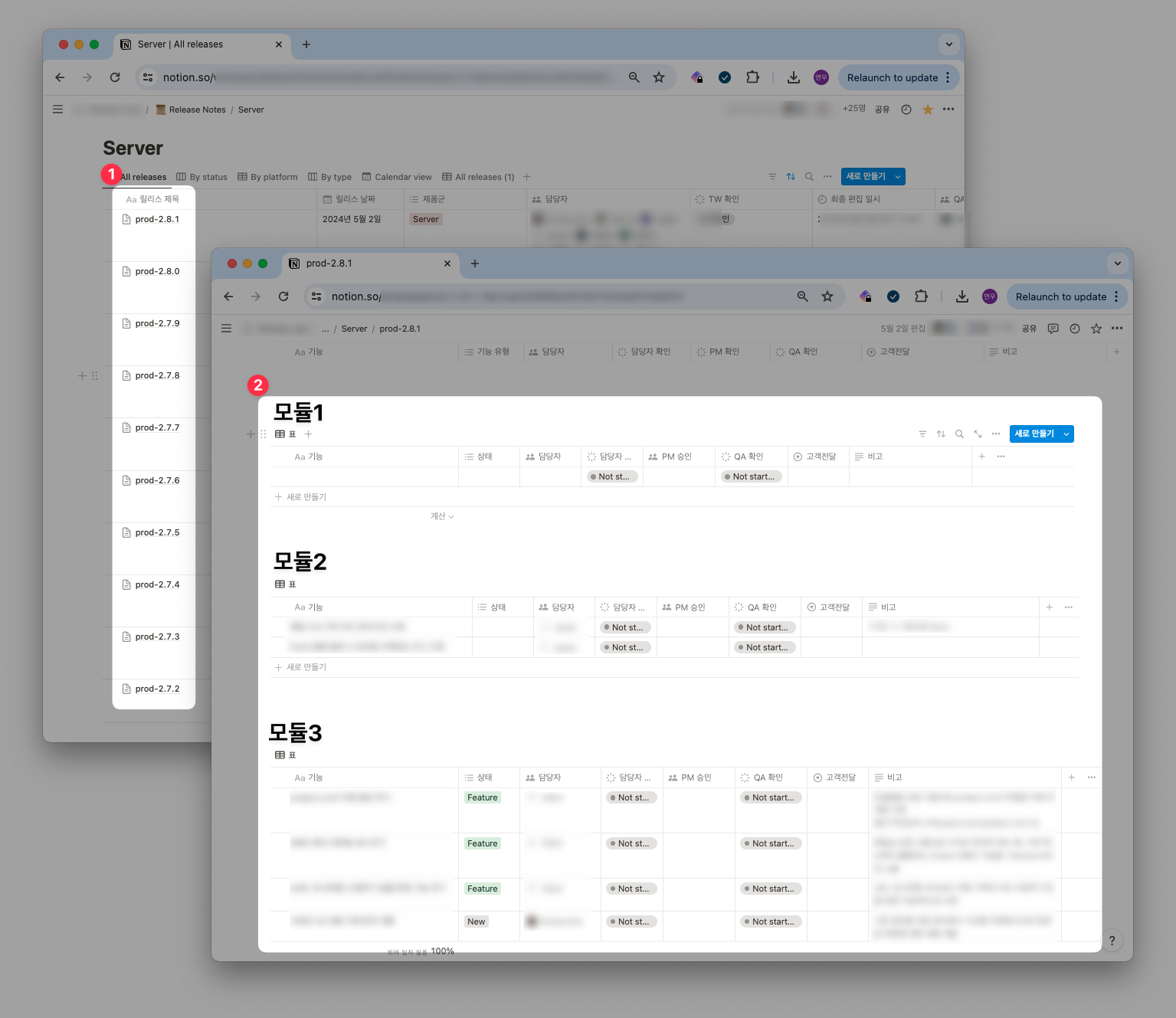 우선 모듈마다 각각 다른 노션 데이터베이스를 사용하고 있었어요.